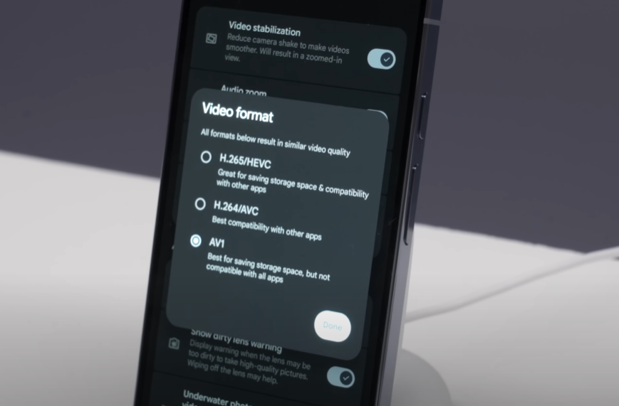 The rise of video creation/consumption has aroused the demand for getting better video quality, which again demands a lot of storage. AV1 Codec is a format to record videos which can save you a ton of storage. It can save 25% to 30% of storage over H.265 without any drop in quality. Google has introduced AV1 codec in pixel 10 lineup, first time in any android smartphone, and this is only possible due to the latest tensor G5 chipset.