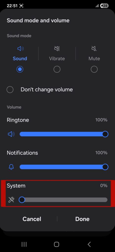 Step 8. Reduce the System volume to 0% and hit the Done button.