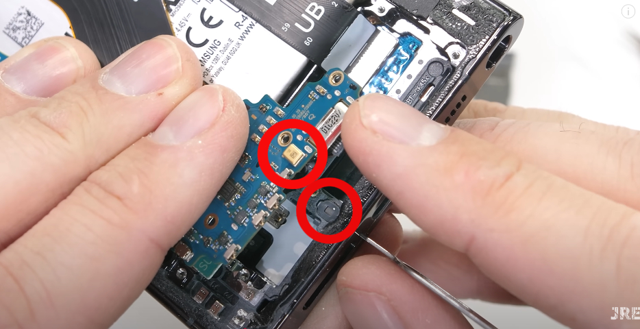 Even though he didn’t clearly mention whether the microphone hole is designed in “L” shape or not, but the video and his explanation implied the microphone appeared to be in “L” shape in each smartphone he disassembled. As you can see below.