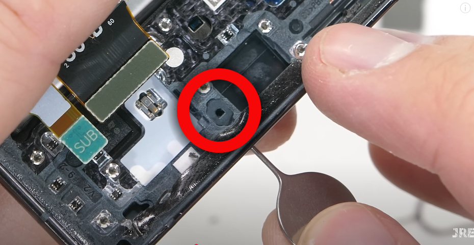 The video starts with revealing vibrator placement and later he hardly poked SIM ejector pin into microphone hole of one smartphone from each company I have mentioned above, so as to know whether a microphone & waterproof layer get damaged or not if someone accidently pokes SIM pin into microphone hole. Hopefully, the microphone & waterproof mesh of each smartphone turned out to be safe from any type of damage through SIM ejector pin.