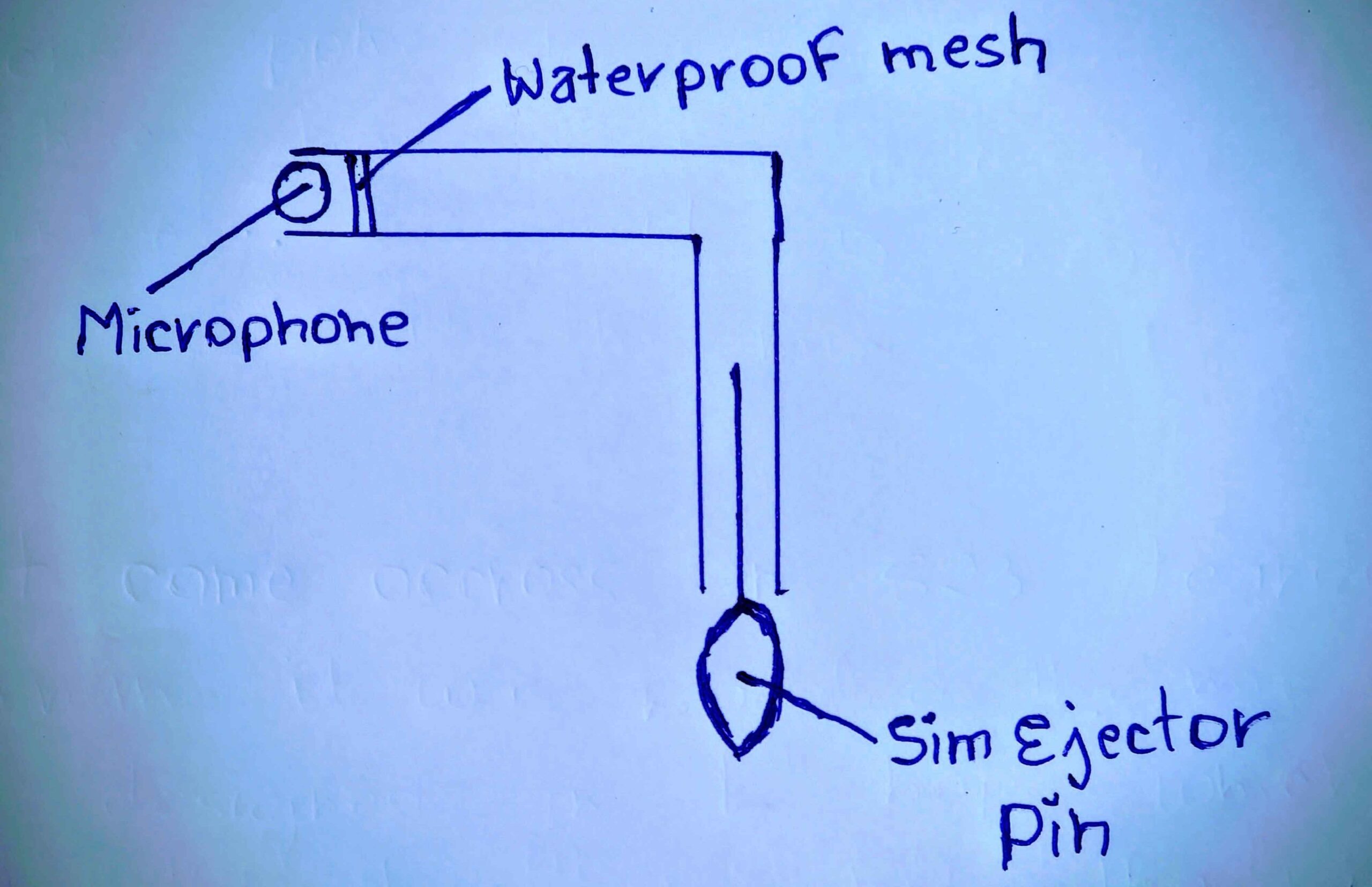 With the waterproof mesh gone, the tiny & narrow hole is visible which seems to going down, the SIM pin is inserted from the outside hole which is parallel to smartphone edges. It seems both these holes join each other somewhere, which technically creates an “L” shape hole for microphone. Even if someone hardly pokes SIM pin into the “L” shape mic hole, the microphone and waterproof mesh remain intact.